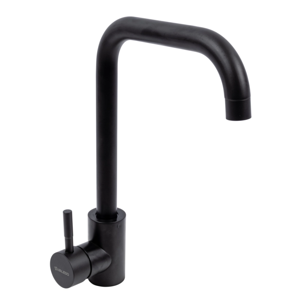 Смеситель кухонный VALESO BG77 в черном цвете – это стильный и функциональный аксессуар для вашей кухни. С высотой 275 мм, он легко впишется под кухонные шкафы и на столешницы, придавая вашей кухне современный вид. От основания к носику смесителя высотой 205 мм, вы получите удобный доступ к потоку воды для всех своих нужд.